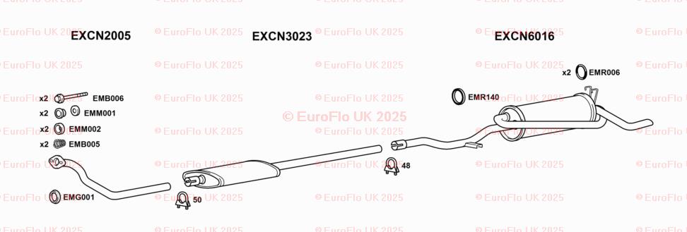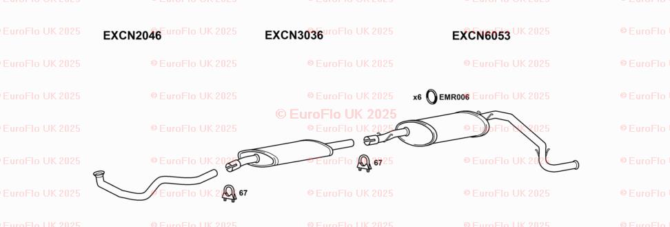 The product is a set of two EuroFlo Exhaust Rubber Mounting Round Hanger Support Mounting specifically designed for Citroen C15, C25, and CX models. Made in the United Kingdom, this hanger is a genuine replacement part (Manufacturer Part Number: EMR006) that provides support for the exhaust system. The round hanger helps to securely hold the exhaust in place and reduce vibration, ensuring a stable and functional exhaust system for your vehicle.