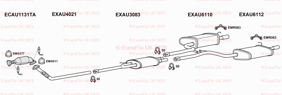 Audi A4 U Bolt Exhaust Clamp - Size: 50mm with M8 Nuts
