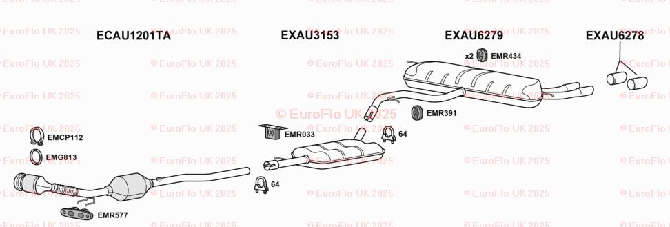 For Audi Q3 8U Models 2.0 CAT Mid Section & Rear Back Box Silencer Exhaust Clamp