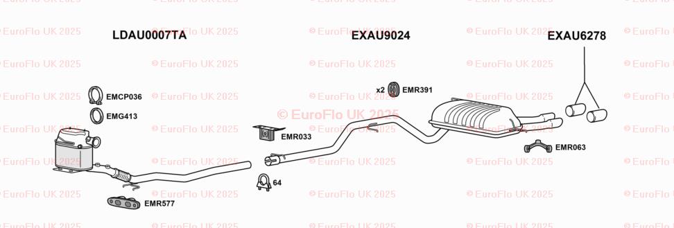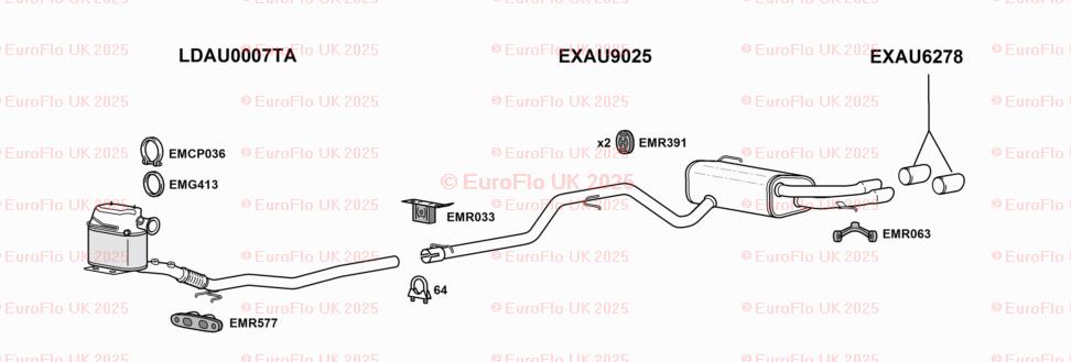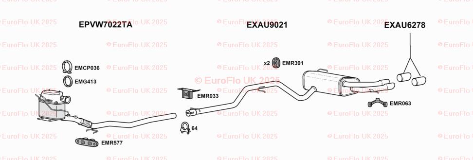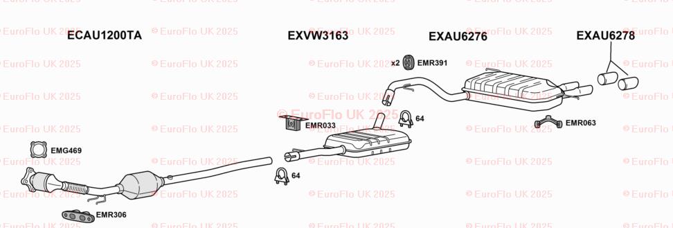 The product is a Euroflo Exhaust Clamp designed specifically for Audi Q3 8U models with a 2.0 CAT mid section and rear back box silencer. It includes a flange, hanger, and clamp, all necessary components for installation. Manufactured in the United Kingdom, this high-quality clamp is a genuine part with the manufacturer part number EMC064S. Ideal for ensuring a secure and efficient exhaust system, this Euroflo clamp is a reliable choice for your Audi Q3 8U vehicle.