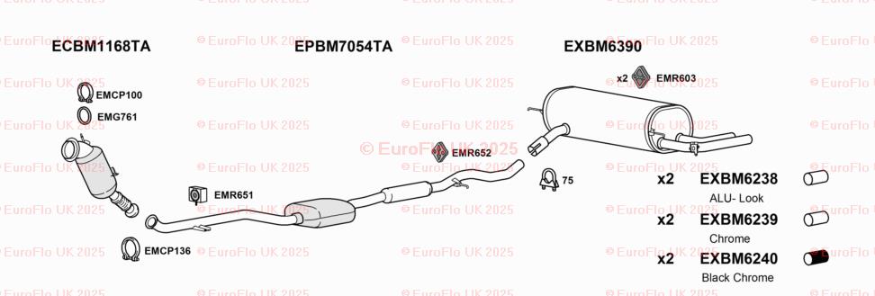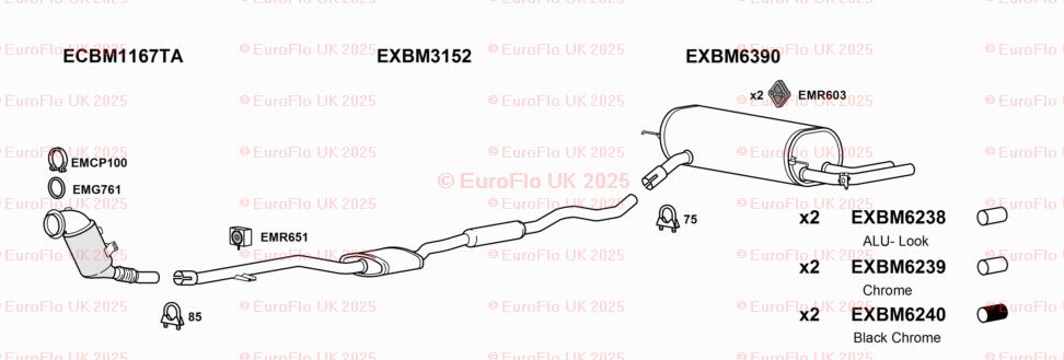 The product is a rear back box silencer exhaust clamp designed specifically for BMW 1 Series 2.0 models F120 & F125. Manufactured by Euroflo in the United Kingdom, this clamp is essential for securely attaching the exhaust system to the vehicle. The EMC075S clamp is included in the package, and it is a genuine part with a manufacturer part number of EMC075SCCP. This high-quality accessory ensures a perfect fit and optimal performance for your BMW 1 Series.