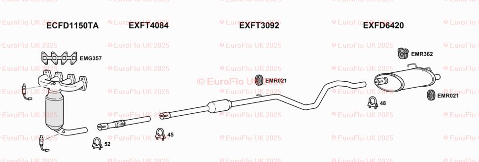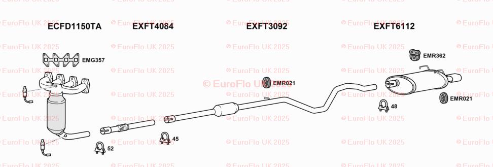For Fiat 500 Models (312) 1.2 Petrol Front Down Pipe & Mid Section Exhaust Clamp