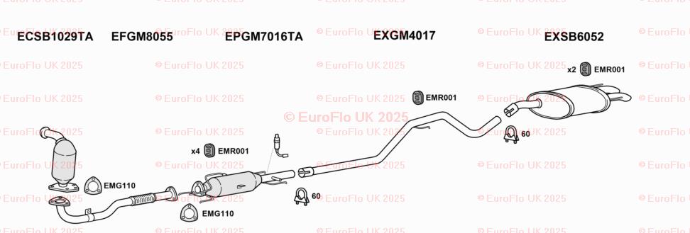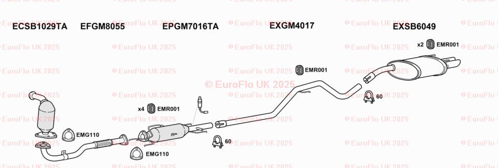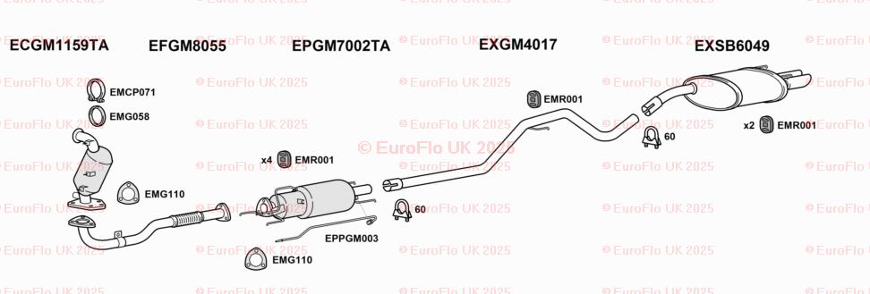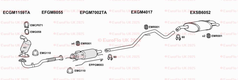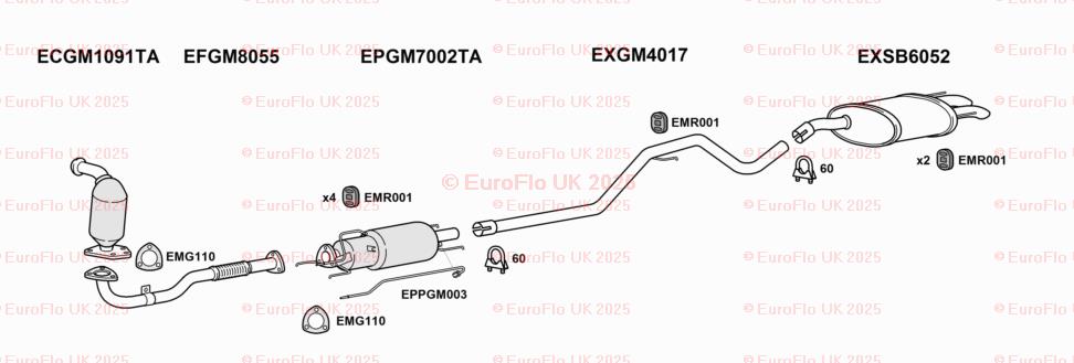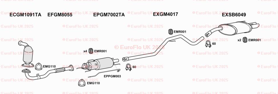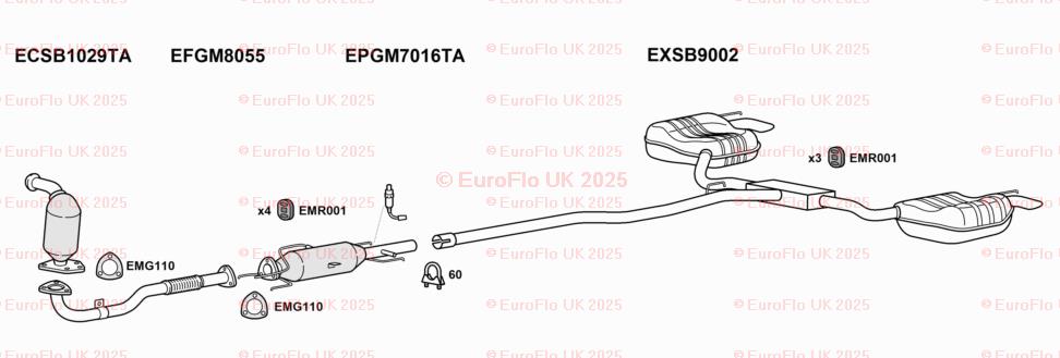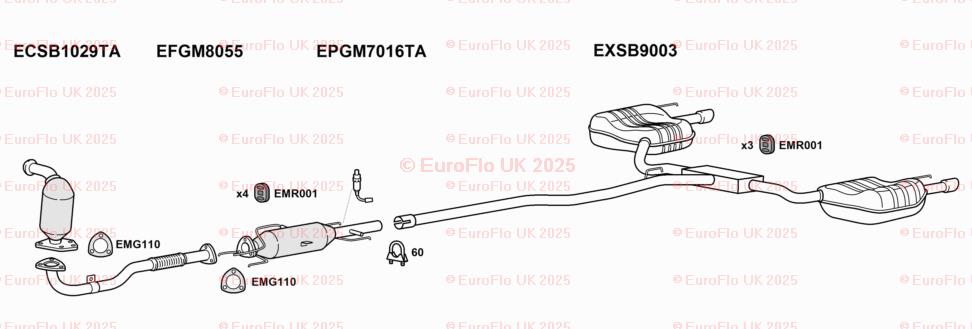 The EuroFlo Rear Back Box Silencer Exhaust Fitting Kit is specifically designed for Saab 93 models with 1.8 and 1.9 diesel engines. This kit includes an exhaust clamp with a manufacturer part number of CCPEMCP60, suitable for rear placement on the vehicle. Made in the United Kingdom, this 150g unit is a reliable and high-quality accessory for your car's exhaust system.