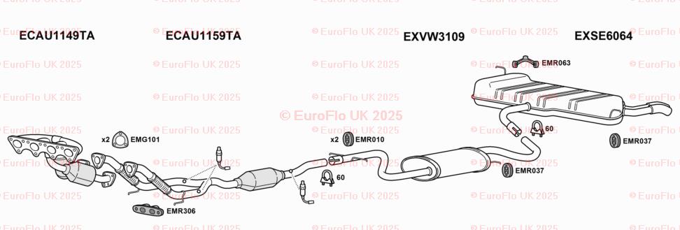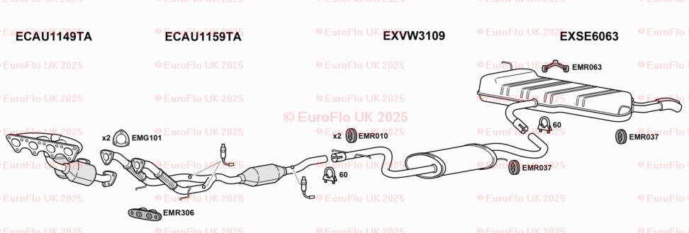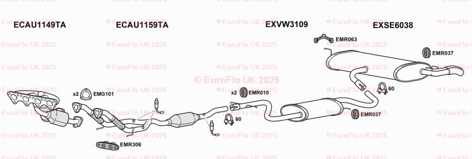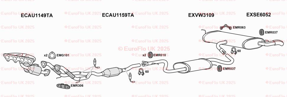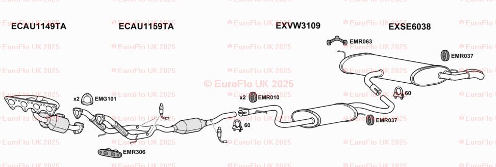 The EuroFlo Front Down Pipe Upper CAT Section Exhaust Gasket is designed specifically for Seat Altea models with a 2.0 MPV engine. Manufactured in the United Kingdom, this exhaust clamp features the manufacturer part numbers EMC054SCCP and EMR063. The gasket is suitable for rear placement on the vehicle and is a reliable replacement for OE/OEM numbers such as BOSAL 255-102, 255-425, KLARIUS 420262, 420514, 420668, and VAR36. This high-quality accessory ensures a secure and efficient exhaust system for your vehicle.