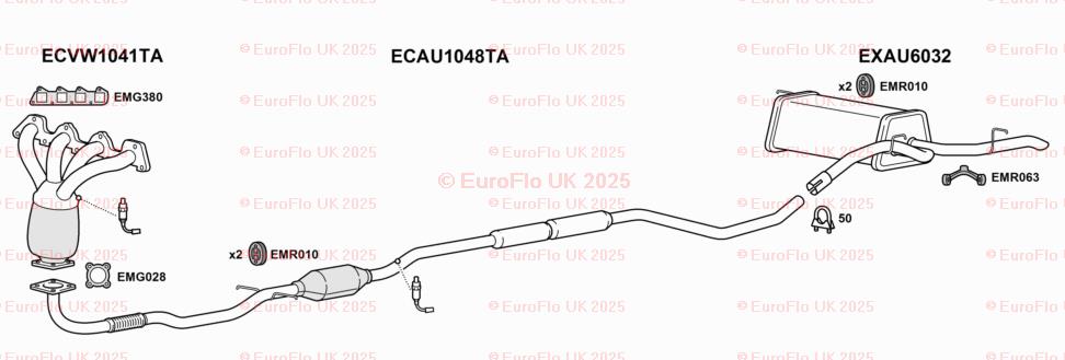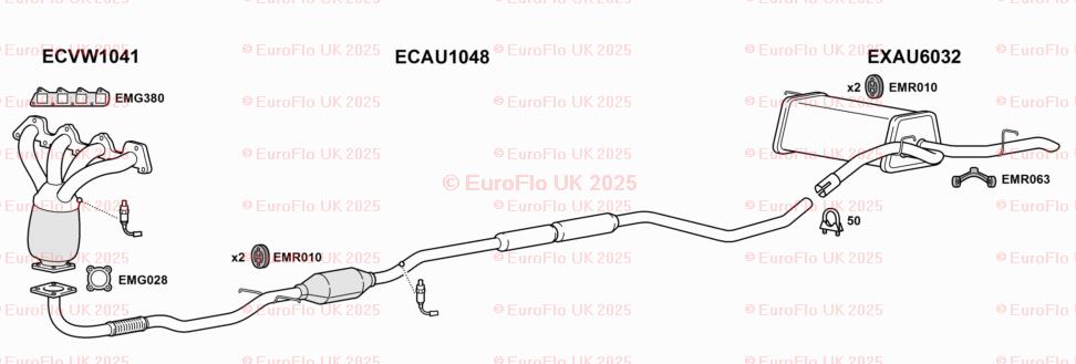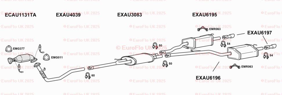 Audi A4 U Bolt Exhaust Clamp - Size: 50mm with M8 Nuts