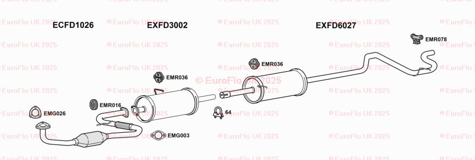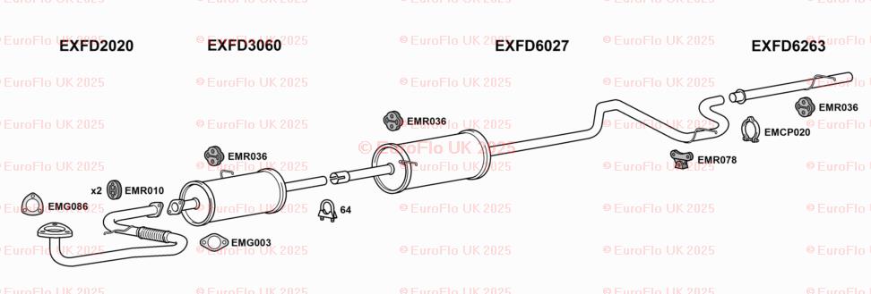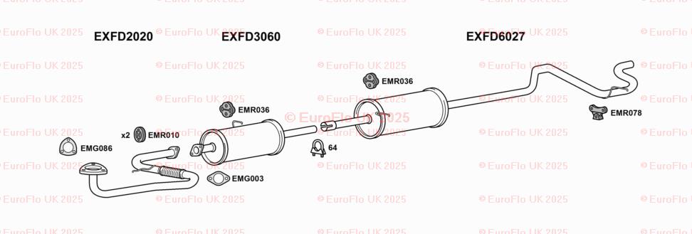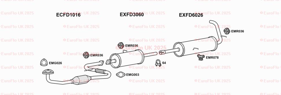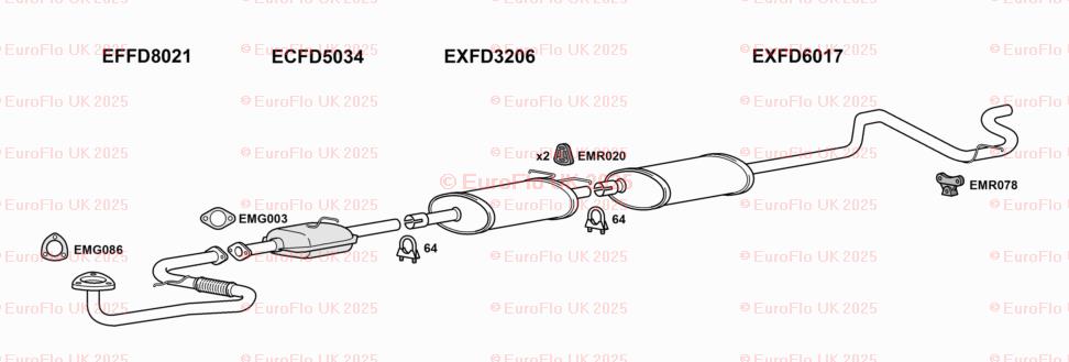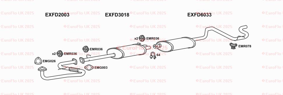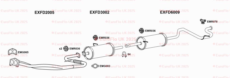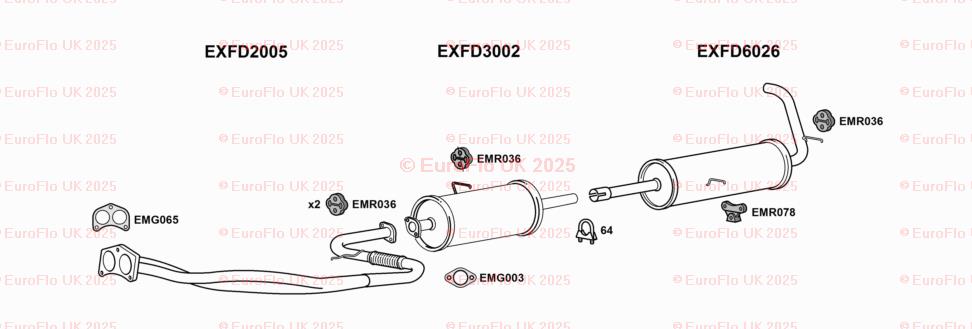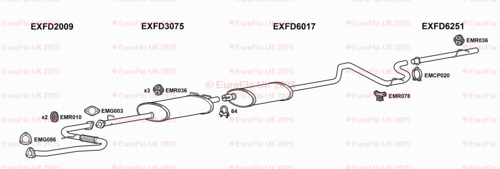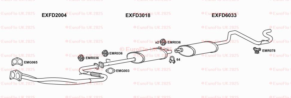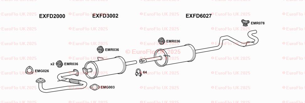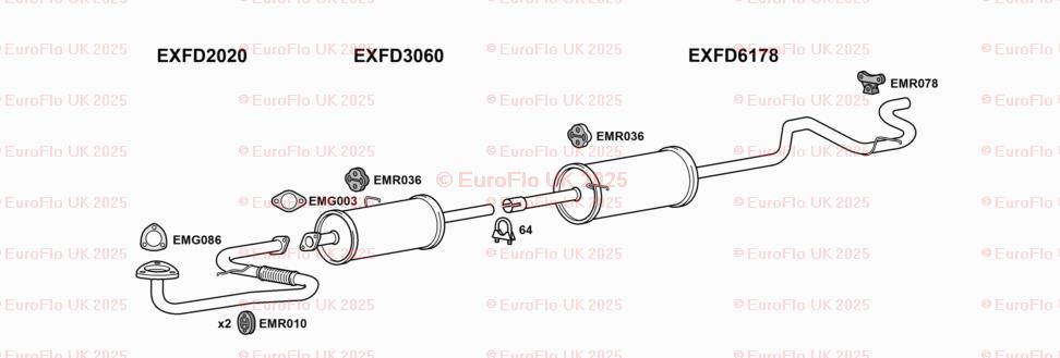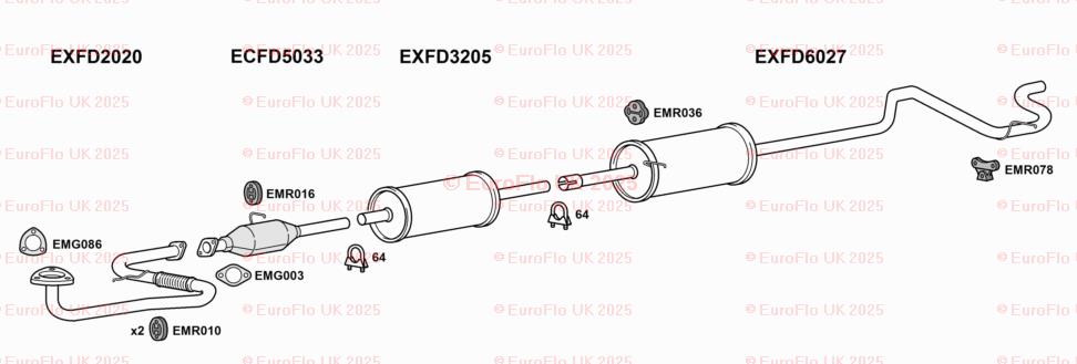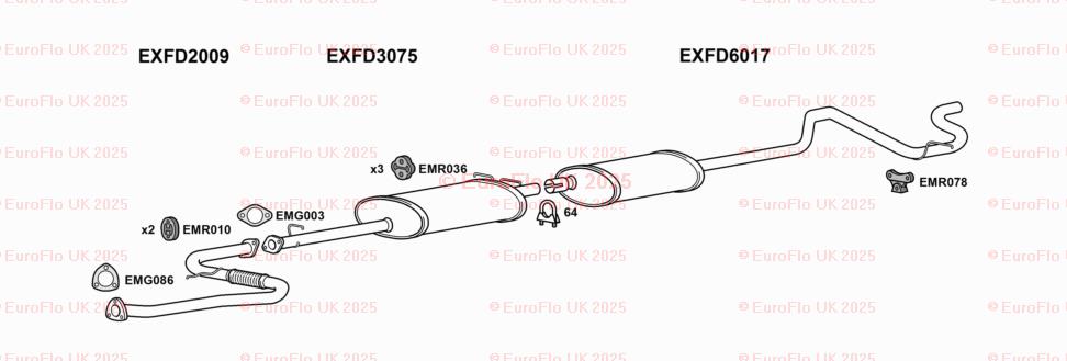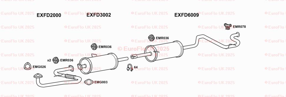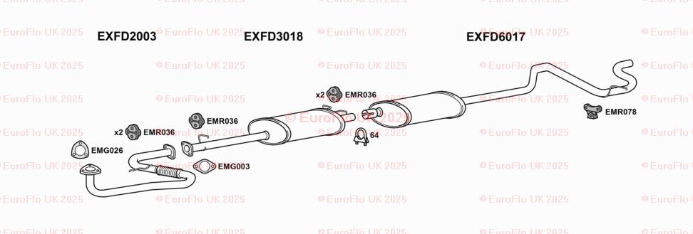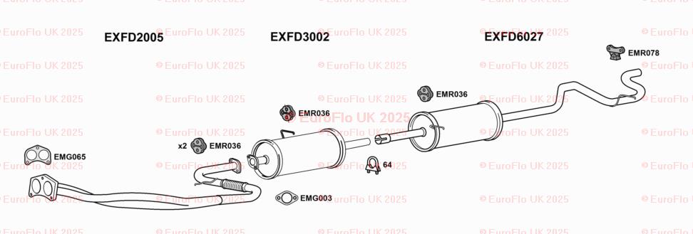 The product is a rear silencer back box rubber hanger support specifically designed for Ford Transit MK5 2.0 & 2.5 vans. Manufactured by EuroFlo, this exhaust system kit ensures 100% accuracy of fit and includes a rubber hanger for secure placement on the lower rear section of the vehicle. This high-quality component is essential for maintaining the proper functioning of the exhaust system in Ford Transit vans.
