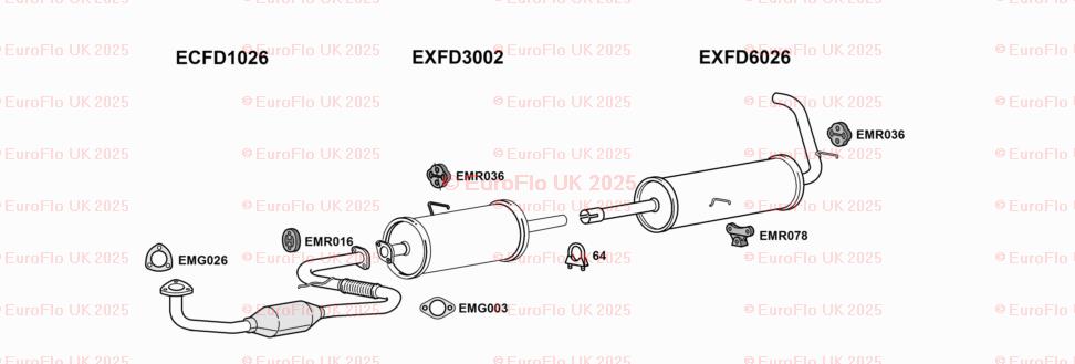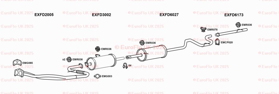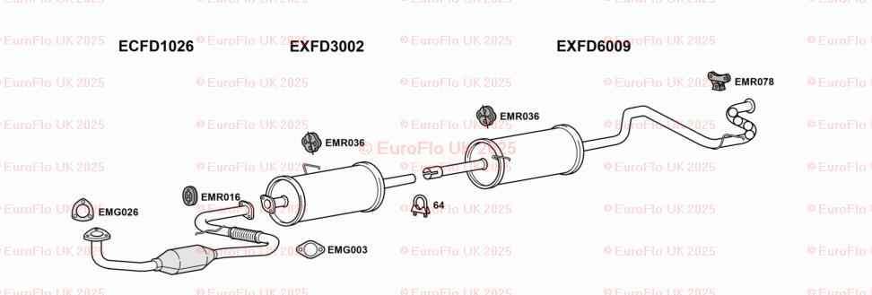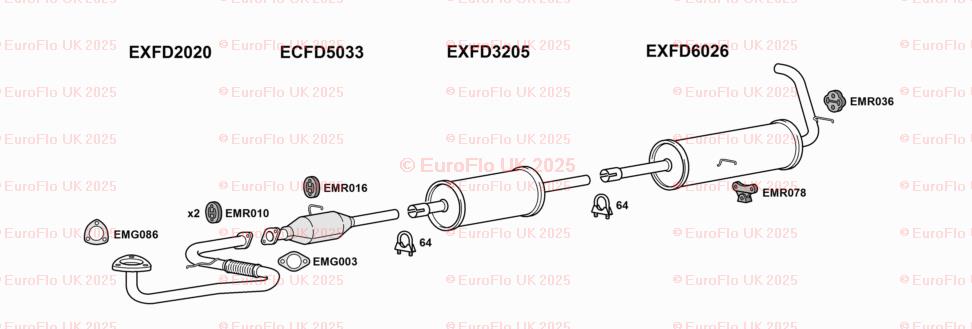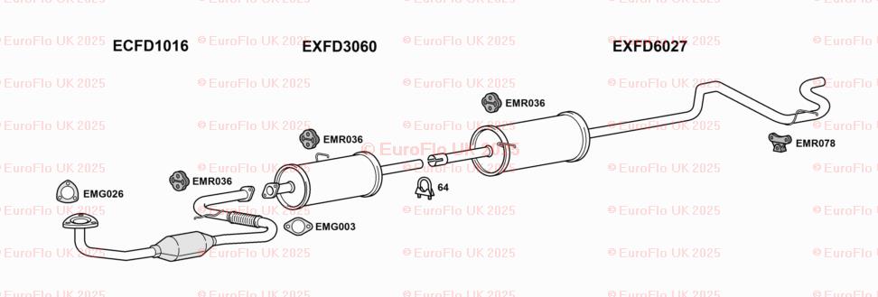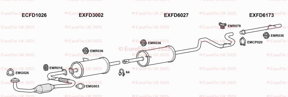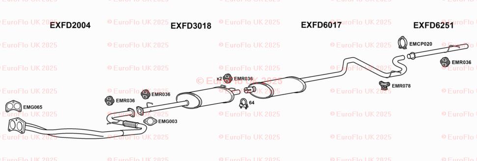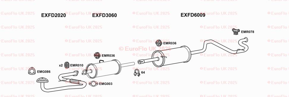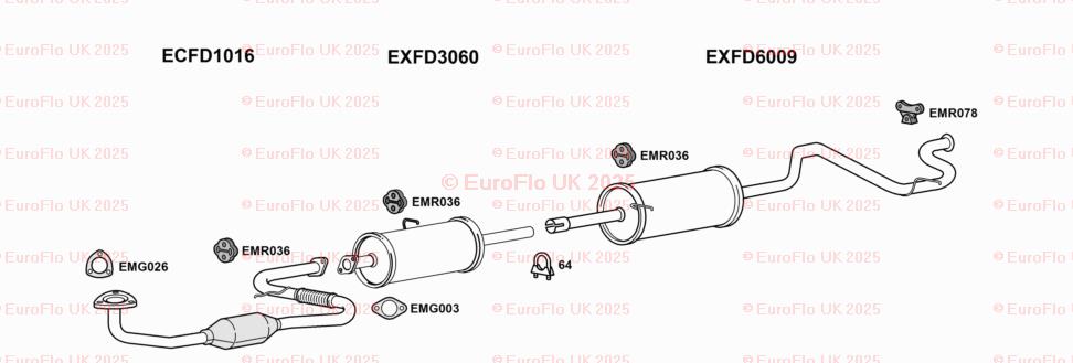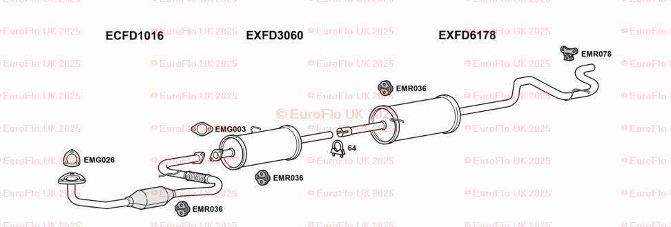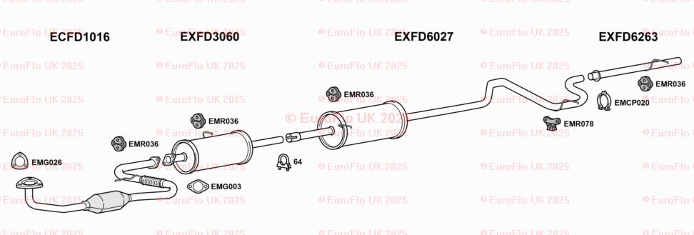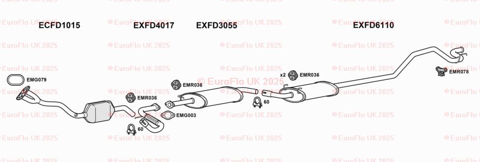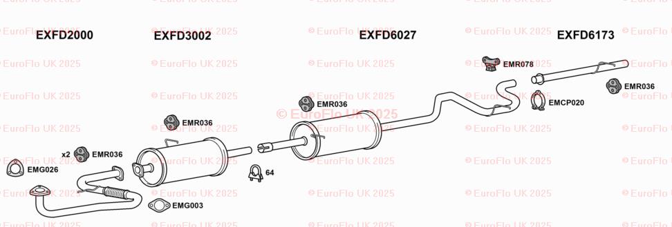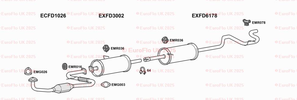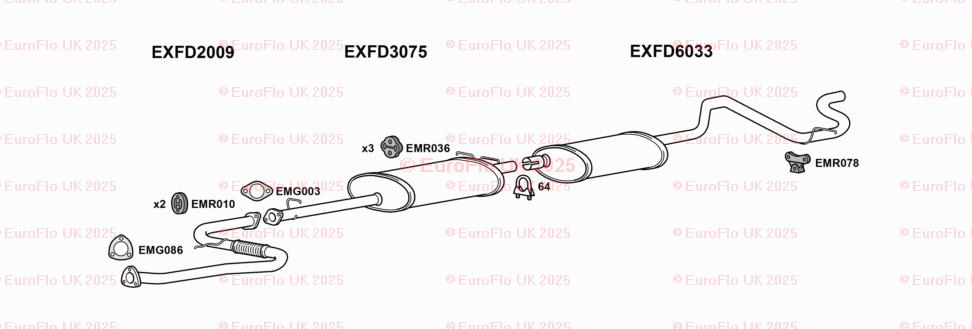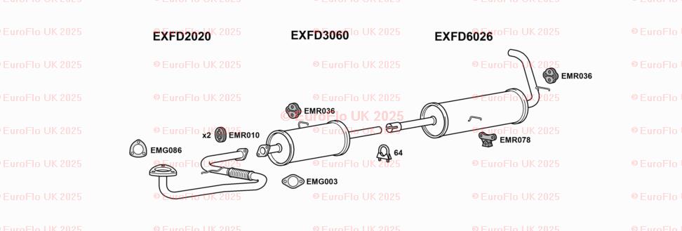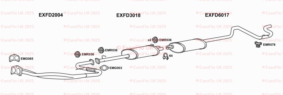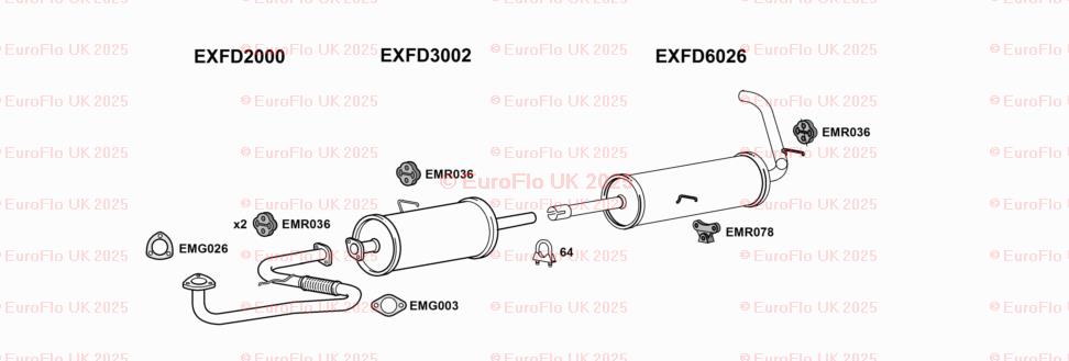 The product is a rear silencer back box rubber hanger support specifically designed for Ford Transit MK5 2.0 & 2.5 vans. Manufactured by EuroFlo, this exhaust system kit ensures 100% accuracy of fit and includes a rubber hanger for secure placement on the lower rear section of the vehicle. This high-quality component is essential for maintaining the proper functioning of the exhaust system in Ford Transit vans.