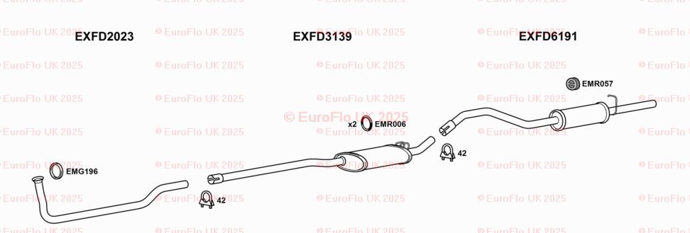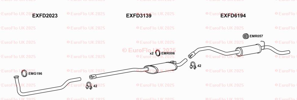 The product is a set of two EuroFlo exhaust rubber mounting round hanger supports designed for Ford Escort MK1 models with 1.1 and 1.3 engines. Made in the United Kingdom, these hangers are manufactured with a 100g unit type and come with the manufacturer part number EMR006. They are not modified items and include the necessary hanger support for easy installation. Perfect for maintaining the proper alignment and support of the exhaust system in classic Ford Escort vehicles.